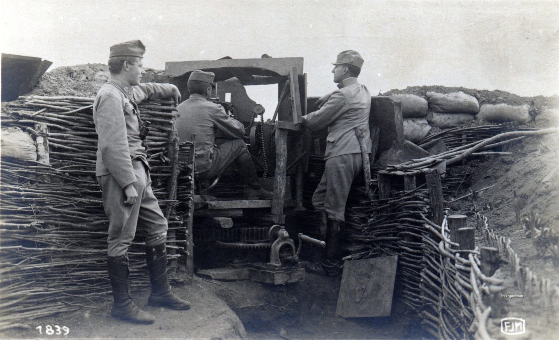 Like the submarine, the machine gun had existed for decades before the war. Though machine guns had evolved considerably, more important was their widespread availability, which contributed to the stalemate of the trench warfare on the Western Front. Machine guns were also used in novel ways. For example, they could be mounted on airplanes thanks to a clever innovation: the interrupter gear, which synchronized the gun’s firing with the plane’s propellers so that the bullets would not hit the propeller’s blades.